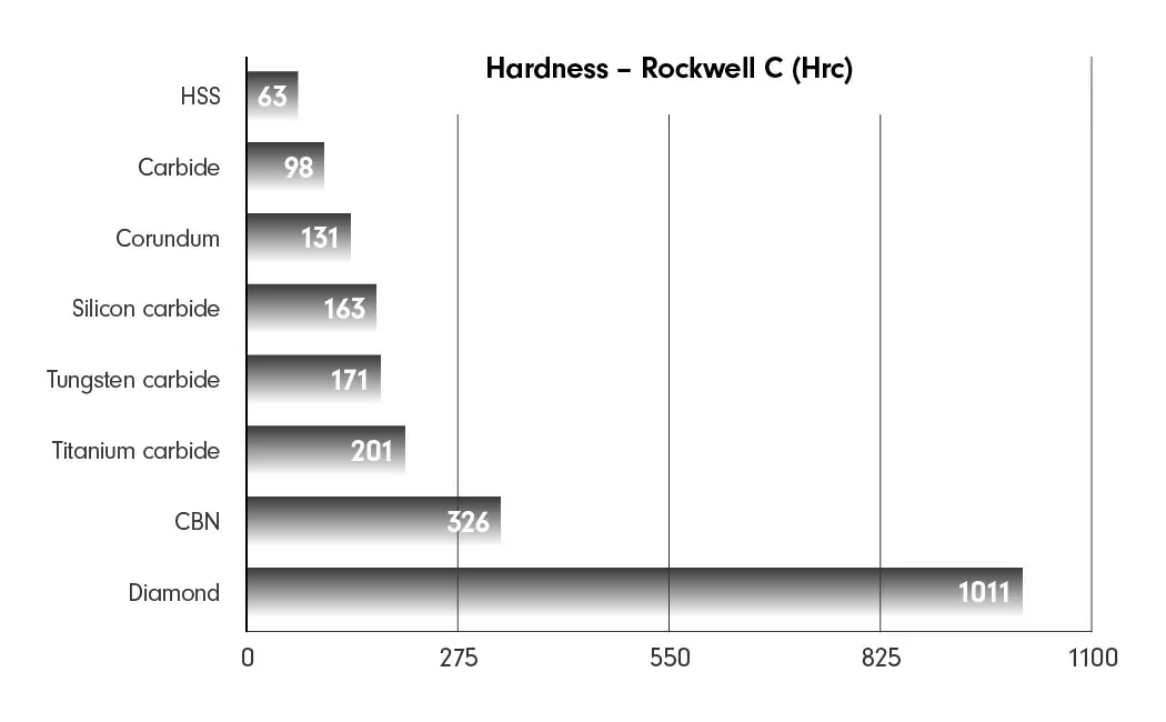 Diamond is extremely hard. It is particularly well suited for the following materials: